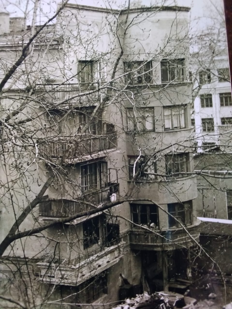 Только в 2002-м году (в ходе перетурбаций, запущенных как раз этой защитой — стал работать в коммунистической прессе) я брал во ВГИКе интервью у Марлена Хуциева и выяснил, что хоть по сюжету главный герой, которого играл в фильме Попов, и шагает по Костомаровскому мосту в сторону Заставы Ильича от Курского вокзала (самый первый и самый долгий кадр фильма – смена молодёжью 60-х рабочего дозора 1917-го года), но там ничего не снималось. Двор, в который он входит, как и конструктивистский дом с балконами – снимали на Спиридоновке, неподалёку от Патриарших (Пионерских тогда) прудов. Я нашёл очень похожий дом, выходит, который мог быть прототипом.