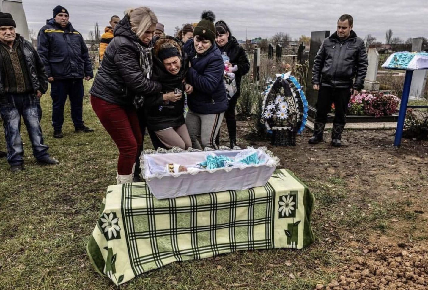Нет, способные точно такую же красную полосочку провести между нациями, какую начальство велит — просто не видеть во френдлентах вот такие фотографии гробиков, которых не было бы без попаданий ракет по жилым домам — это ж святые люди! (кстати, как правило они-то и верующие) Им же ничего не страшно, им всегда начальство подскажет, как думать и чувствовать, у них царь в голове есть… Но Полина — не такая, у неё, молодой мамы, сердце рвётся при виде материнских и родительских вообще страданий там, за линией фронта.