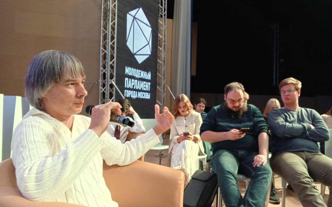 Тринадцатого октября минувшего года имела место интереснейшая, как по мне, беседа в Молодёжном парламенте Москвы — со мною, многогрешным, увешанным всеми нажитыми за полвека функциональными (что только и оправдывает) статусами. Поскольку итог этой беседы остался у меня в виде аудиофайла и фотографий, уже внутри иного сезона я отваживаюсь оное всё и опубликовать. Ранее был резон делиться такими файлами с другими площадками, но поскольку и беседа эта была по сути учебной (для всех), и «век живи — век учись», я публикую её здесь на правах вписанной в свой хронотоп и немного ретро-аналитической устной, живой речи. Да и кто другой стал бы расшифровывать? Имён задающих вопросы (в отличие от лиц) не даю, всё идёт просто по порядку.