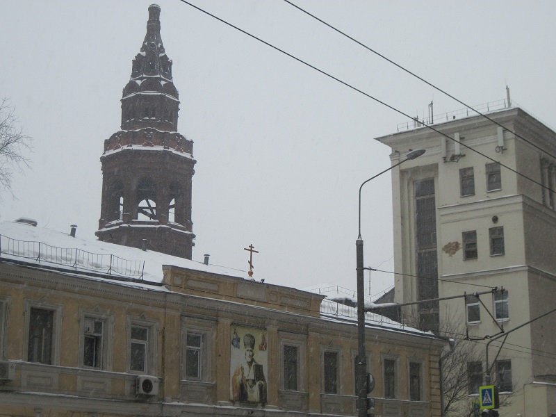 …На фото выше — туда уже въехала Моспатриархия РПЦ, однако ведёт себя пока скромно. Ограничилась Николаем-чудотворцем над входом. Это начало десятых годов — здание ещё вполне по-советски выглядит. Откуда сия институция там взялась — узнаете далее…