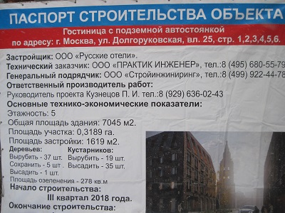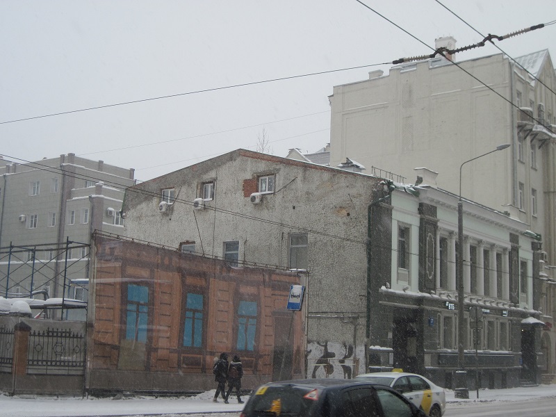 Так что же за девять лет сделала РПЦ на заполученном ею участке земли (а это — на фото — всё пространство до бывшего издательства «Физкультура и спорт», после которого там обитал банк — двухэтажный и тоже сбоку облезленький дом справа)?